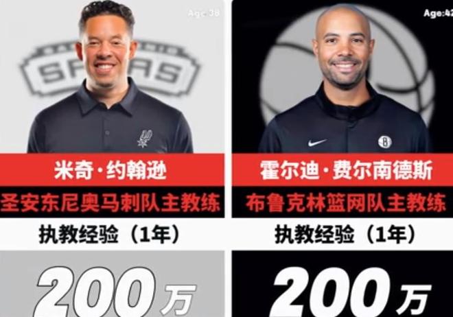 此外馬刺隊的主教練米奇約翰遜,同樣年薪只有200萬美元。他是在波波維奇遭遇傷病后,臨時頂替上來的主教練,如今波波維奇已經(jīng)基本退休了,米奇約翰遜正好可以陪著球隊成長,他身邊有文班亞馬、卡斯?fàn)柡凸甑刃滦悖灿袡C會成就一番事業(yè)?;@網(wǎng)隊也是一支重建隊伍,主教練費爾南德斯的年薪也只有200萬美元,并且沒有戰(zhàn)績壓力。
