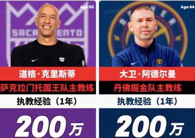 除了以上3位教練之外,灰熊新教練伊薩落、黃蜂主教練查爾斯、國王隊主教練克里斯蒂、掘金主教練阿德爾曼等4位主教練,年薪同樣都只有200萬美元,都是聯(lián)盟薪水最便宜的主教練??梢钥吹?,最便宜的教練們有一個共同點,那都是菜鳥教練,并且大部分都是在魚腩和重建隊伍,只有阿德爾曼的隊伍頗具實力,而他也是因為名帥馬龍下課,才獲得了機會。